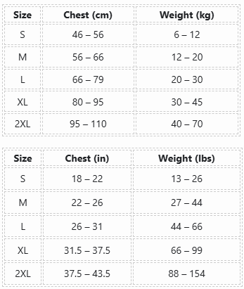Measure your pet’s neck and chest before ordering — if you’re between sizes, we recommend sizing up for comfort.